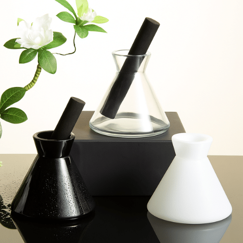 Κατασκευασμένο από ποιοτικό γυαλί, διαθέτει μοντέρνα διάφανη επιφάνεια και συνοδεύεται από μαύρο fiber reed stick που απελευθερώνει σταδιακά και σταθερά το αγαπημένο σας άρωμα στον χώρο. Είναι ιδανικό για χρήση με όλα τα πιστοποιημένα αρωματικά έλαια FCF.