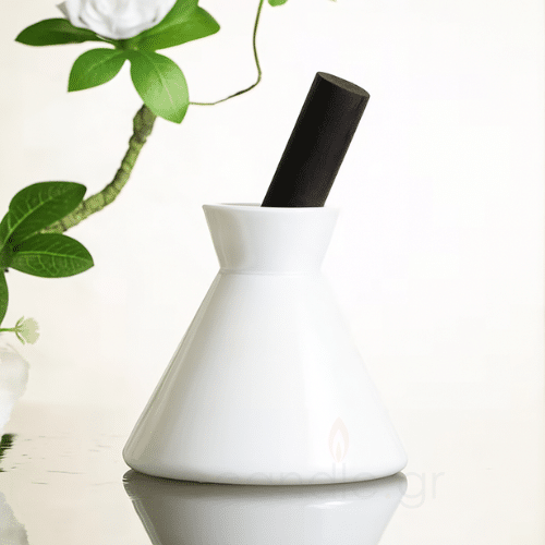 Κατασκευασμένο από ποιοτικό γυαλί, διαθέτει μοντέρνα λευκή επιφάνεια και συνοδεύεται από μαύρο fiber reed stick που απελευθερώνει σταδιακά και σταθερά το αγαπημένο σας άρωμα στον χώρο. Είναι ιδανικό για χρήση με όλα τα πιστοποιημένα αρωματικά έλαια FCF.