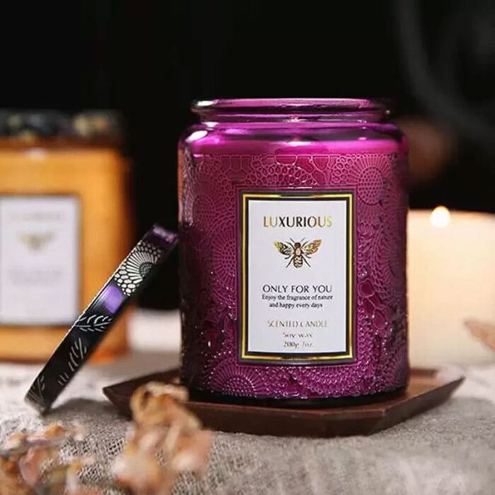 Γυάλινο Ανάγλυφο Βάζο Μεγάλο Βιολέ. Καινούργια πολυτελή ανάγλυφα δοχεία για την κατασκευή αρωματικών κεριών, σε υπέροχα, γιορτινά χρώματα! Με ενσωματωμένο πλαίσιο για ετικέτα για ολοκληρωμένο κερί προϊόν.