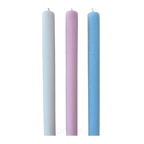 Αρωματική ξυστή στρογγυλή λαμπάδα παραφίνης 30cm, σε Λευκή, Ροζ και Γαλάζια απόχρωση, κατάλληλη για πασχαλινές συνθέσεις και χειροποίητη διακόσμηση.
