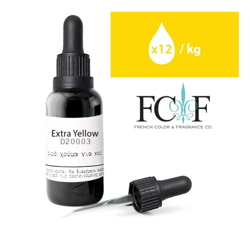 *Extra Yellow………………………………………………………………. 12 σταγόνες / Kg περίπου (σας προτείνουμε να κάνετε δοκιμές στο κερί που θέλετε να χρωματίσετε, μπορεί να χρειαστούν λιγότερες ή περισσότερες ανάλογα το κερί που χρησιμοποιείτε)